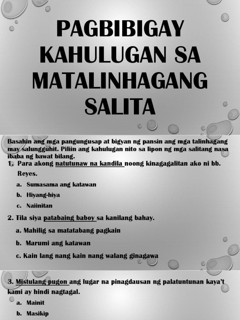 Pagbibigay Kahulugan Sa Matalinhagang Salita Pdf