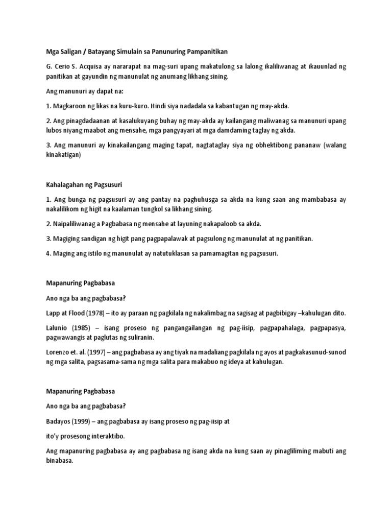 Batayang Simulain Panunuring Pampanitikan Pdf