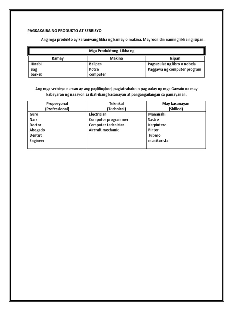 Pagkakaiba Ng Produkto At Serbisyo Pdf