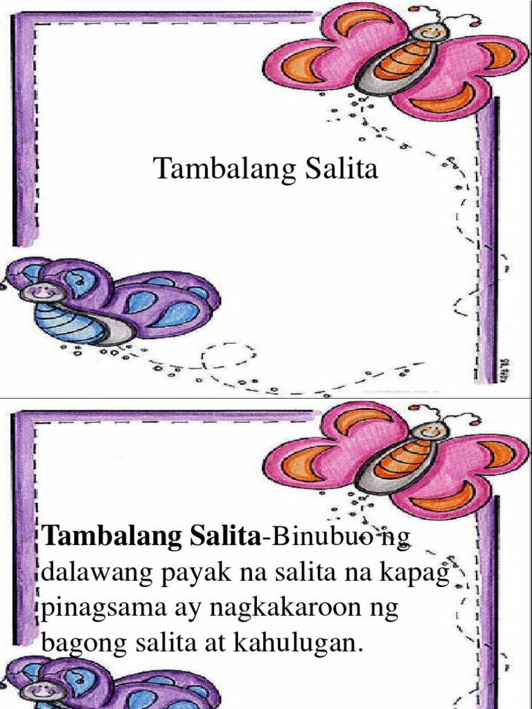 Ano ang mga tambalan na salita. HERE maraming mga isinalin pangungusap halimbawa na naglalaman ng TAMBALAN - tagalog-ingles pagsasalin at. Villatura Ang Tambalan Ay Salitang Binubuo Sa Pamamagitan Ng Pagsasama O Pagtatambal Ng Dalawang Salita Upang Makabou Ng Isang Tambalang Salita.